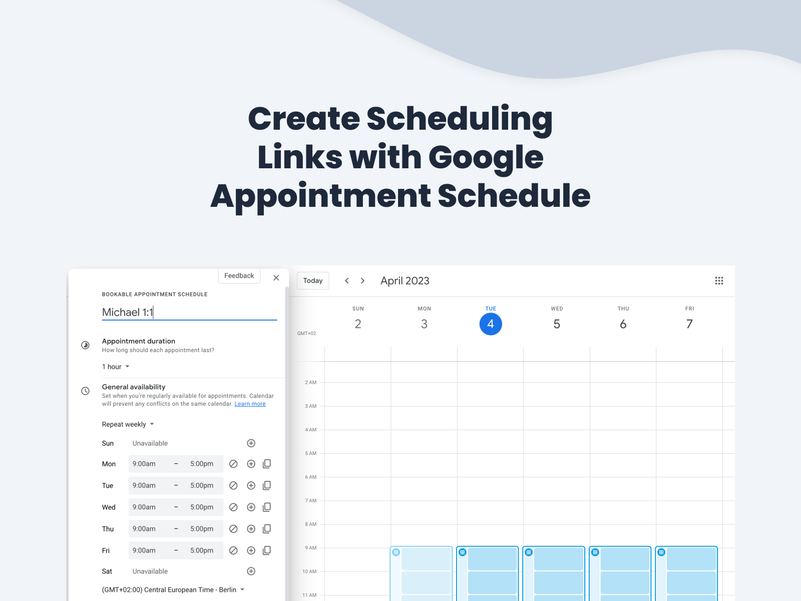 Please check the following if you're interested in using appointment schedules. So, let's check out the basics of the feature so that you can start using it! With appointment schedules, you can: Whether you're managing consultations, team meetings, or client appointments, google calendar allows you to create a personalized booking page where others can easily select a time that fits.